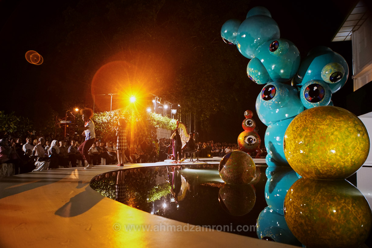 Opening ceremony of Art|Jog 2017, Yogyakarta, Indonesia. WedharRiyadi is a young artist that we choose to change the front yard of exhibition building with his juxtapositionideas, Floating Eyes. Photo by Ahmad Zamroni