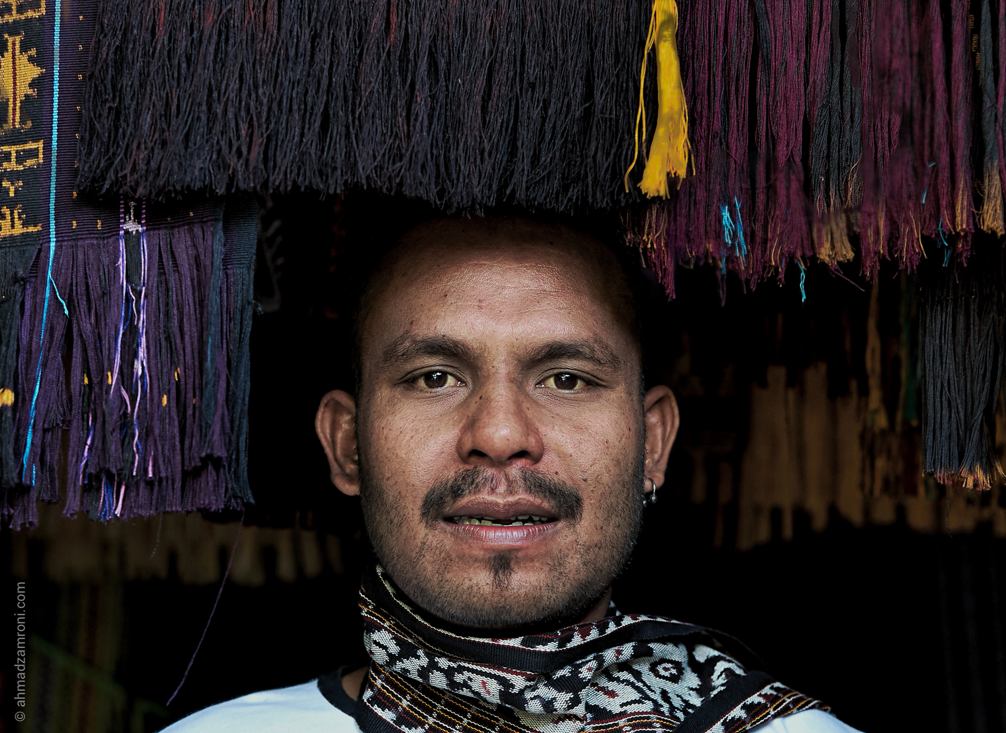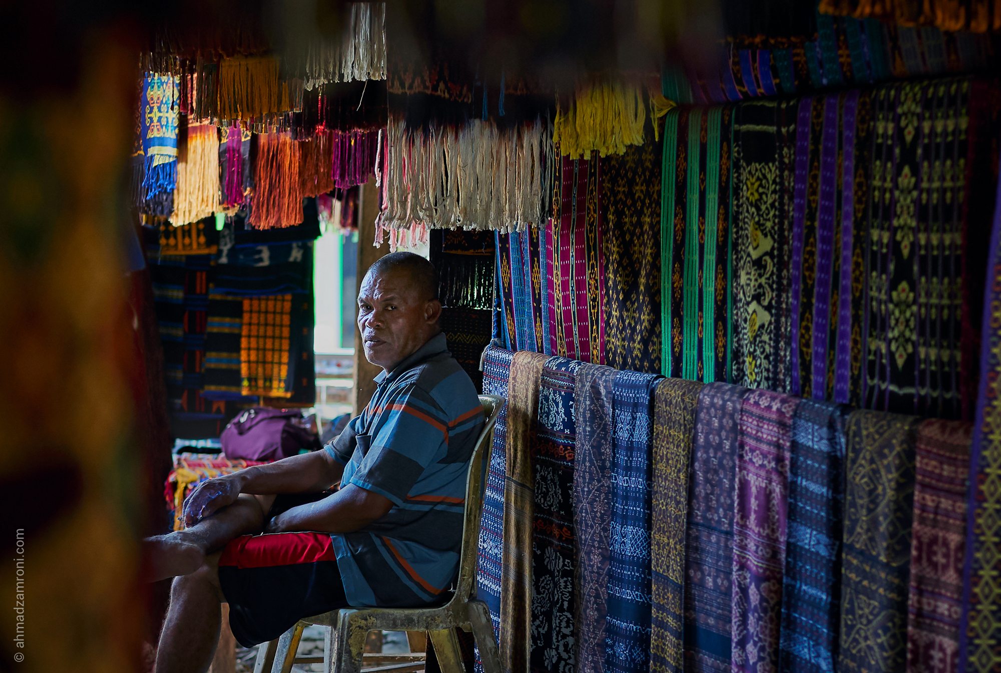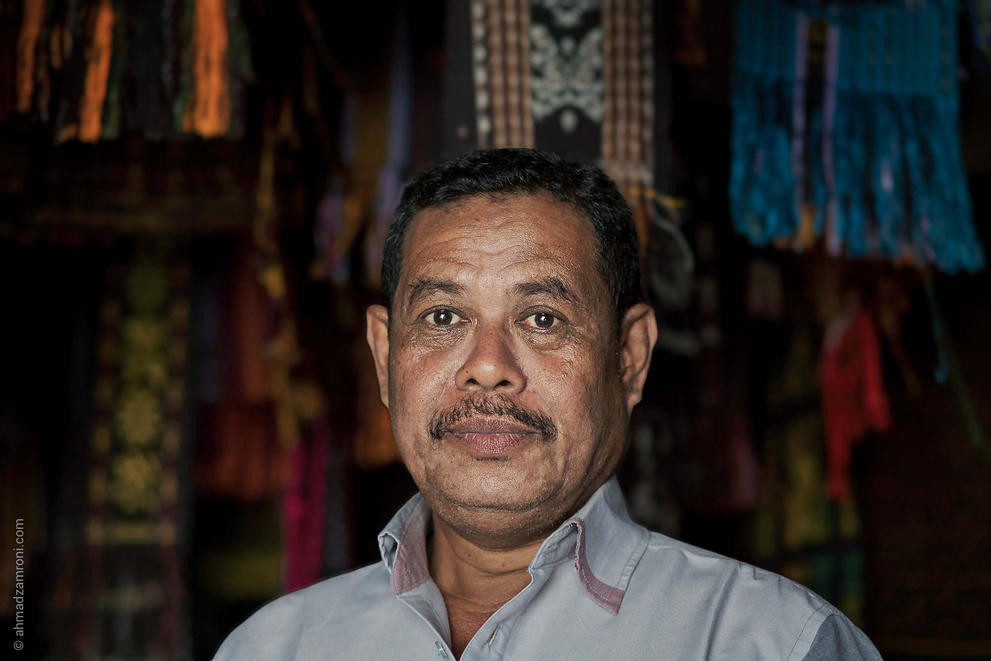Potret Muhammad Nemen (54), pedagang tenun di Pasar Ende. Photo by Ahmad Zamroni