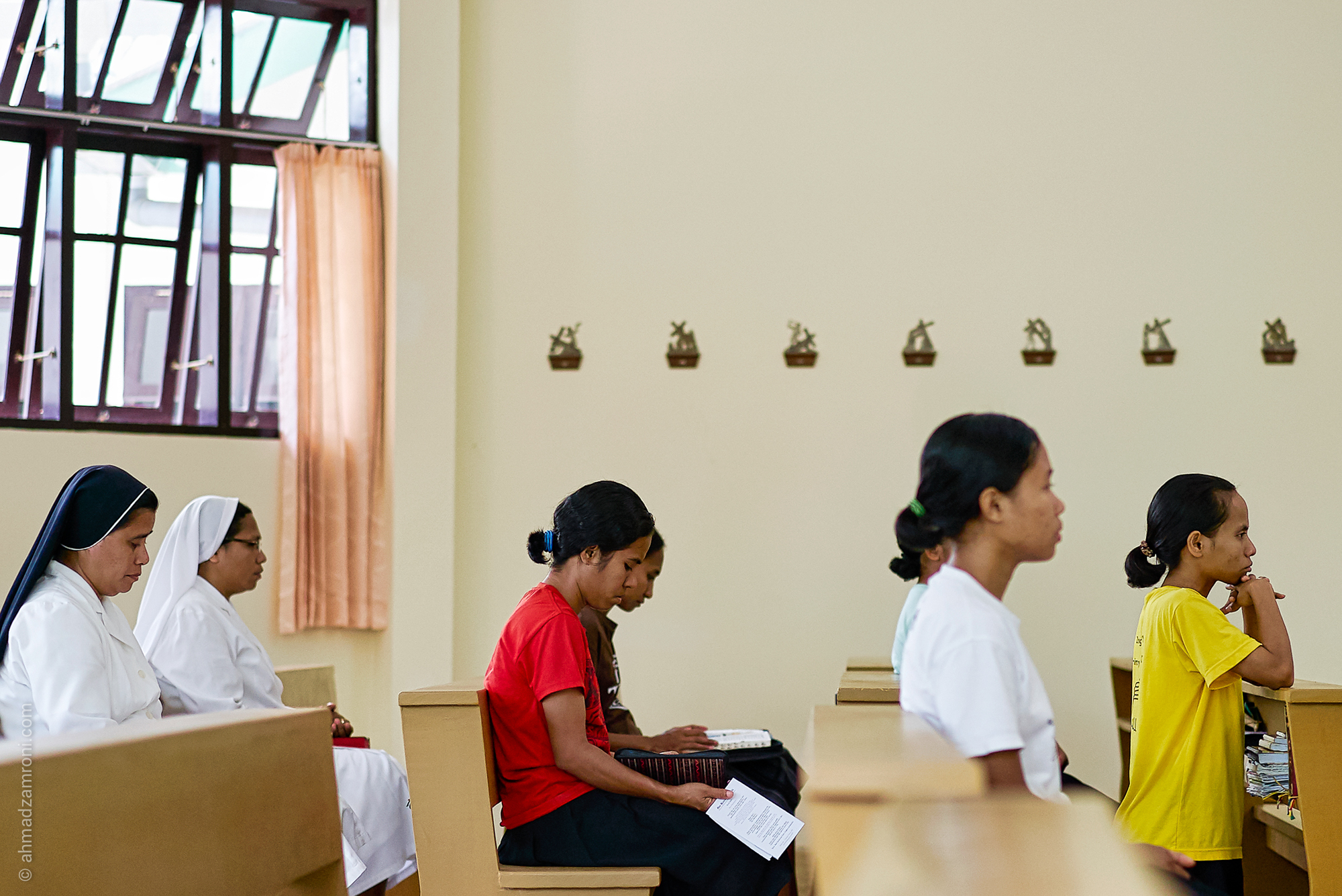 Biarawati dan calon biarawati berdoa di Kapel Biara CSV Ndona, Ende, Nusa Tenggara Timur, Indonesia. Photo by Ahmad Zamroni